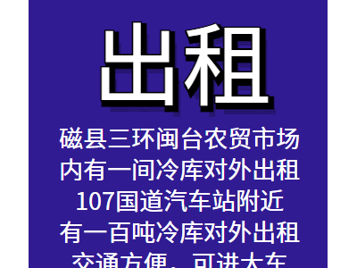 磁县三环闽台农贸市场内有一间冷库对外出租,107国道汽车站附近有一百吨冷库对外出租,交通方便,可进大车
