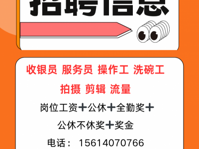 招聘:收银员,服务员,操作工,洗碗工