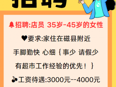 ♥️要求:家住在磁县附近,手脚勤快,心细{事少,请假少,有超市工作经验的优先!}