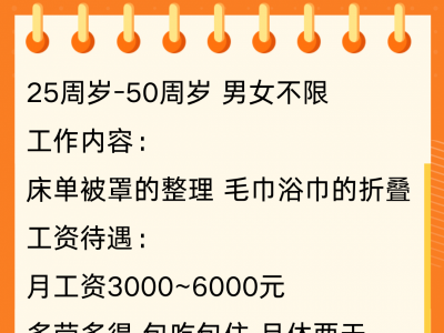 工作内容:床单被罩的整理 毛巾浴巾的折叠