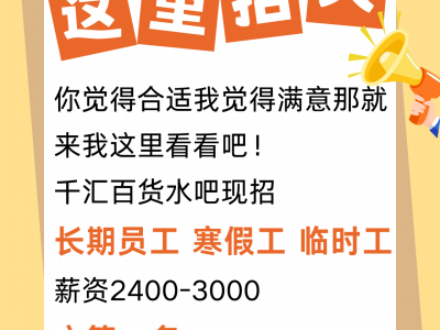 招聘 你觉得合适我觉得满意那就来我这里看看吧!千汇百货水吧现招